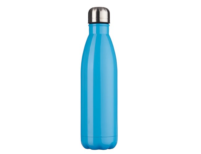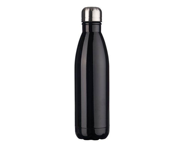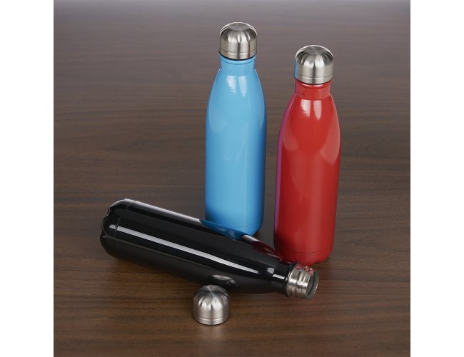 Garrafa 750ml em inox com tampa rosqueável e pintura brilhante. Obs.: Não é um modelo térmico.
