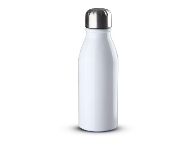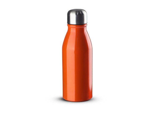 Garrafa em alumínio com capacidade 500ml. Tampa rosqueável em inox com anel de silicone.