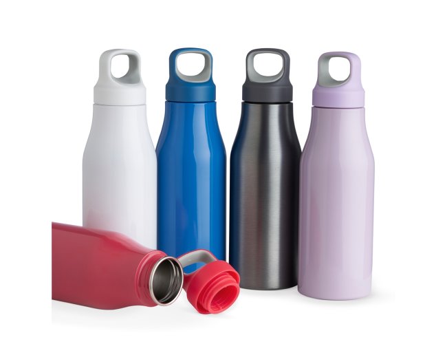 Garrafa 650ml em inox com tampa rosqueável com alça para transporte