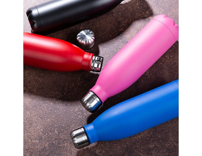 Garrafa 750ml em inox com pintura fosca. Possui tampa prata rosqueável. Observação: não colocar no fogão ou micro-ondas. Obs.: Não é um modelo térmico.