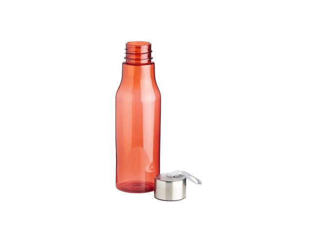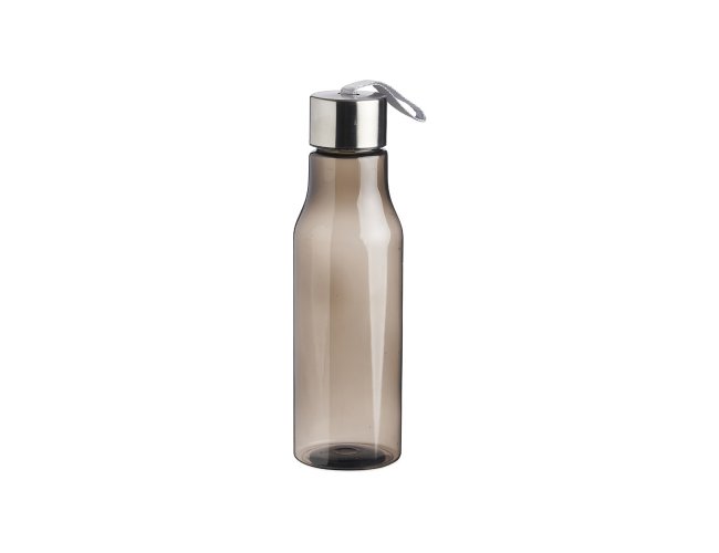 Garrafa plástica 600ml com tampa de alumínio e alça de nylon embutida.
