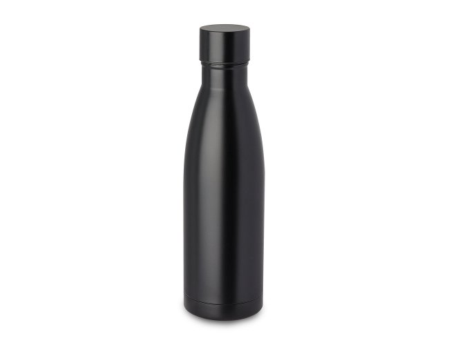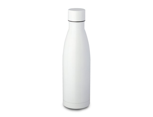 Garrafa térmica em aço inox com parede dupla isoladao à vácuo, com tampa de inox na cor do produto e anel de silicone para vedação. Capacidadede até 500ml, pintura fosca.