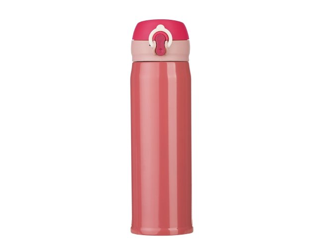 Garrafa térmica de 400ml de inox colorida com botão e válvula para abertura. Possui um sistema de trava (basta mover para cima/baixo para abrir/fechar), pressione o botão central para abrir a tampa(possui na parte interna borracha protetora evitando vazar o líquido). Para abrir a tampa por completo basta rosqueá-la, parte interna revestida em inox. Na embalagem do produto pode ir especificado a capacidade de 450ml ou 500ml devido aos fabricantes que trabalham terem impresso a descrição deste modo, porém ressalvamos a capacidade correta de 400ml.