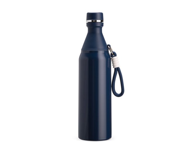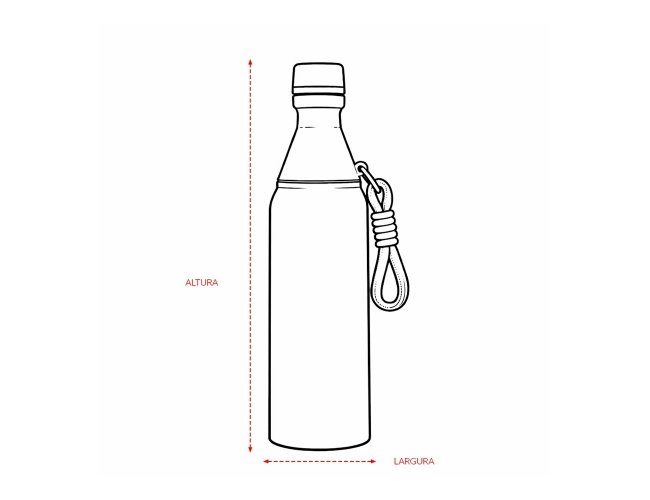 Garrafa térmica em inox com capacidade para até 500ml. Possui estrutura de parede dupla, ideal para conservar a temperatura de líquidos por mais tempo. Conta com tampa rosqueável e compartimento removível em plástico, permitindo o uso como copo. Acompanha alça em nylon com detalhes em plástico e mosquetão metálico.