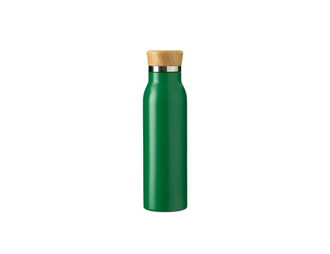 Garrafa térmica feita em inox com pintura em spray, tampa rosqueável em bambu e capacidade máxima de 600ml. Possui estrutura de parede dupla e isolamento a vácuo, permitindo manter a temperatura de líquidos por mais tempo.