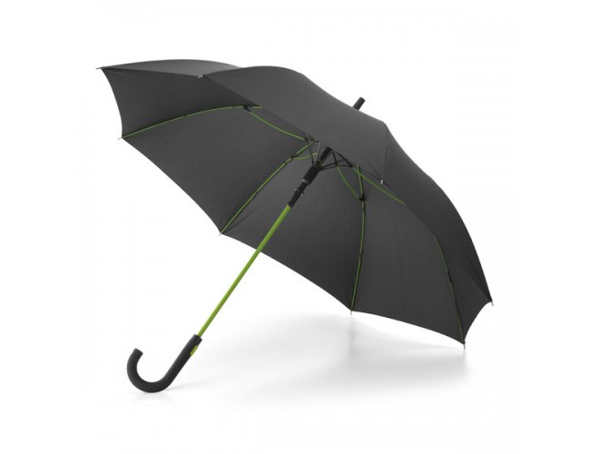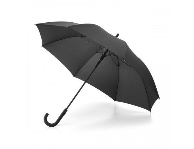 Guarda-chuva Personalizado 99145 com a sua logomarca. Pongee 190T. Varetas em fibra de vidro e pega revestida a borracha. À prova de vento. Abertura automática.