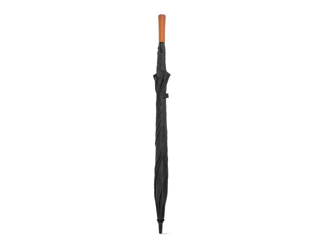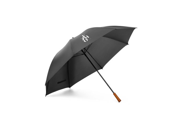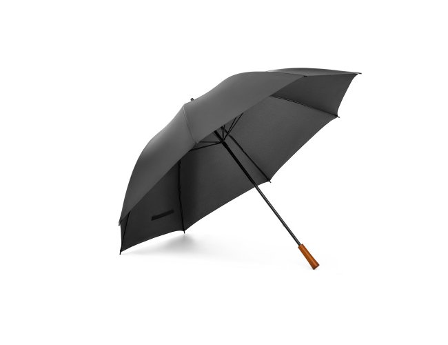 Guarda-chuva de grande portaria em poliéster pongee 190T, com varetas e haste em fibra de vidro e pega em madeira. ø1375 x 855 mm