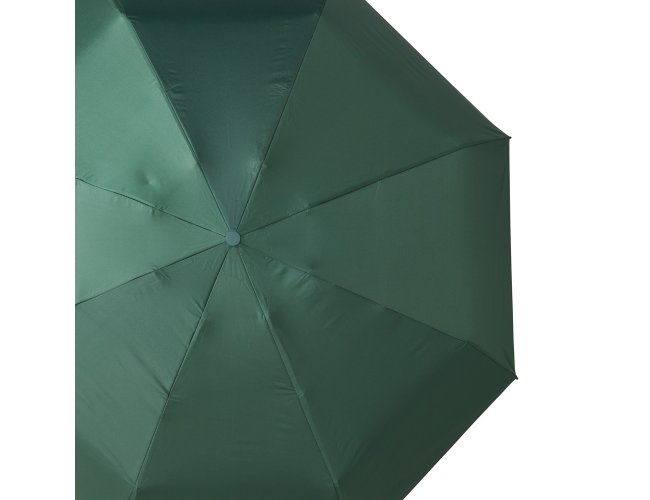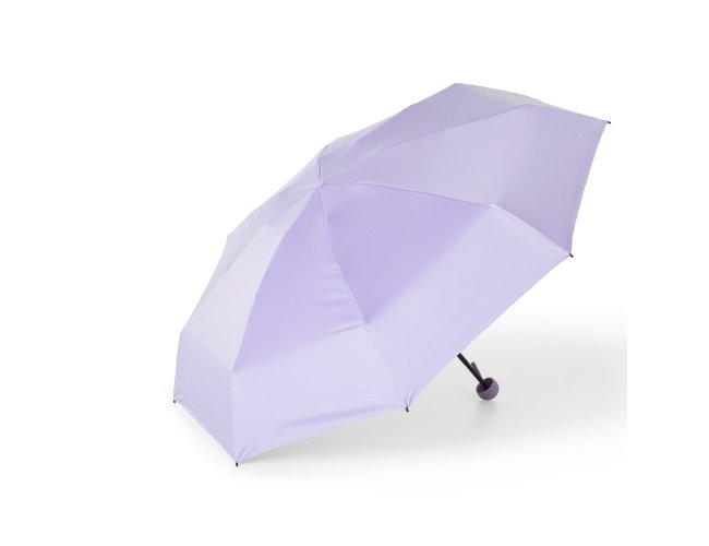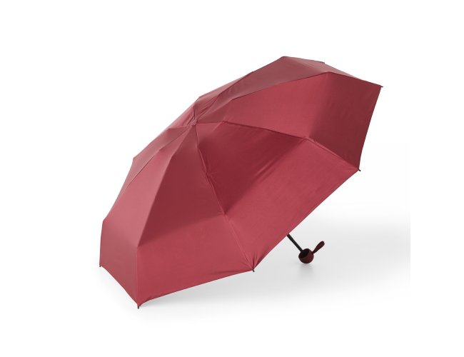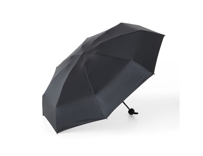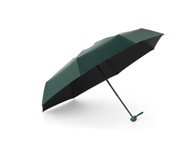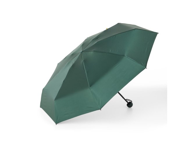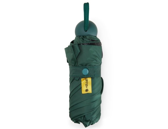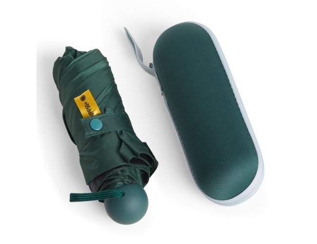 Guarda-chuva manual cápsula em poliéster de impacto impermeável e proteção UPF 50. Possui tecido interno em vinil com 8 varetas e estrutura em aço, pegador, botão de abertura e e alça de Nylon. Acompanha estojo protetor com alça.