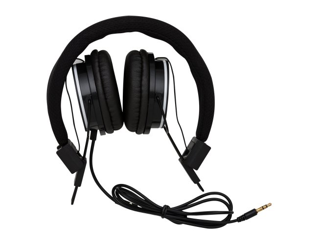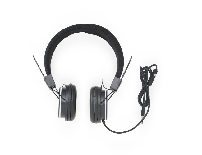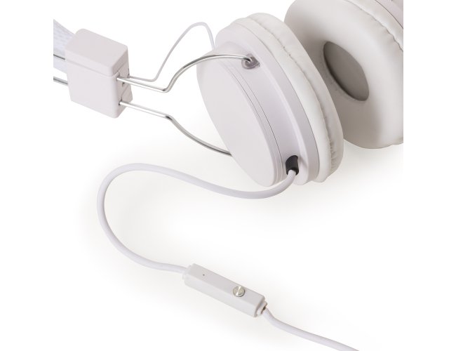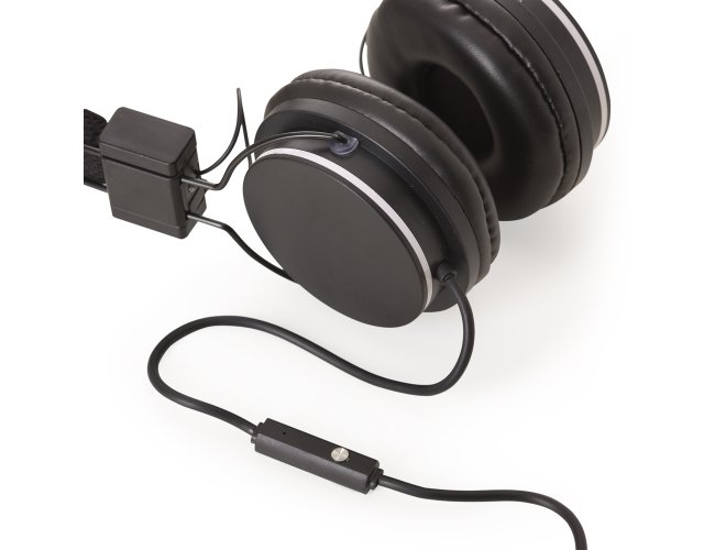 Headfone estéreo com microfone, material em plástico resistente com haste revestida de espuma e alças ajustáveis com fone giratório. Microfone acoplado em suporte no cabo, botão para play/pause e no modo ligação serve para atender chamadas. Entrada P2, capacidade de potência 50mW, impedância 32 ohms a 1 kHz, sensibilidade 108 dB/mW/, frequência de resposta 12-22 000 Hz.