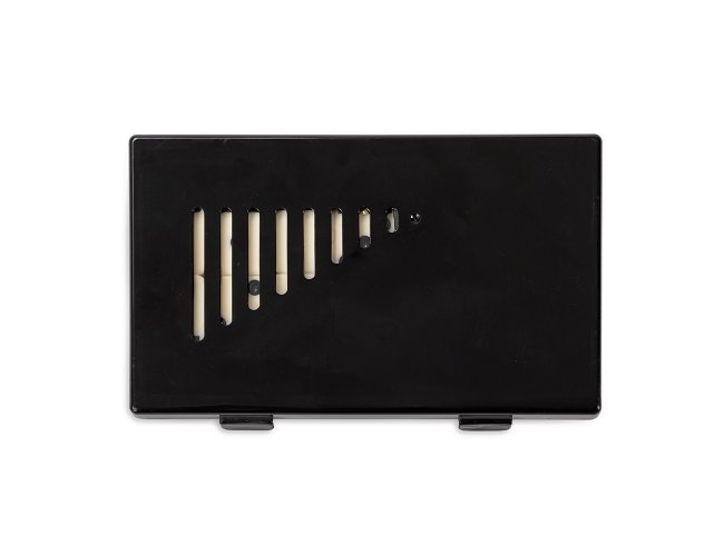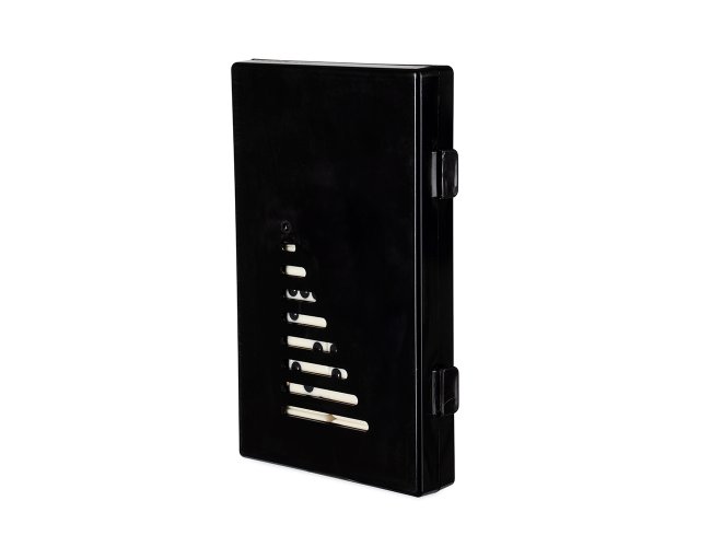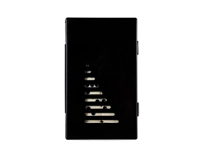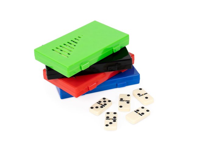 Jogo de dominó com 28 peças com detalhes em relevo. Acompanha estojo plástico com travas de fechamento.
