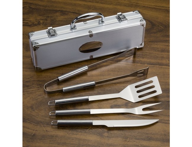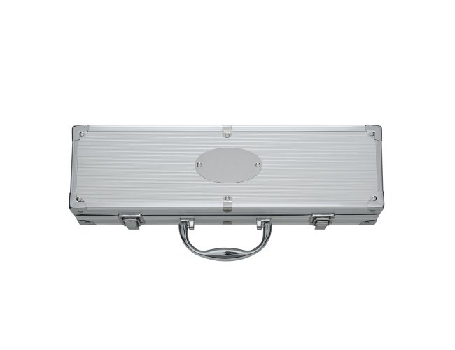 "Kit churrasco 4 peças em maleta de alumínio com relevo.