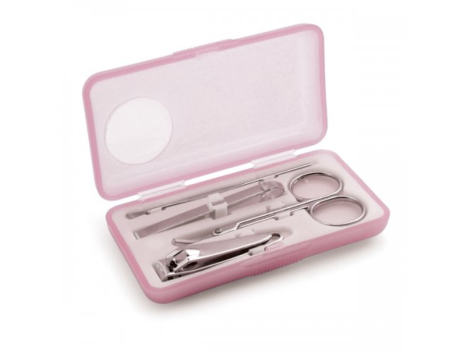 Conjunto de 4 peças para manicure: cortador de unhas, tesoura, pinça e empurra cutículas. Fornecido em estojo. 100 x 53 x 20 mm