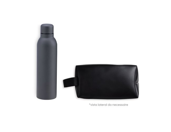 Kit Garrafa E Necessaire - Cinza/Preto - 2 Pçs KT-90364