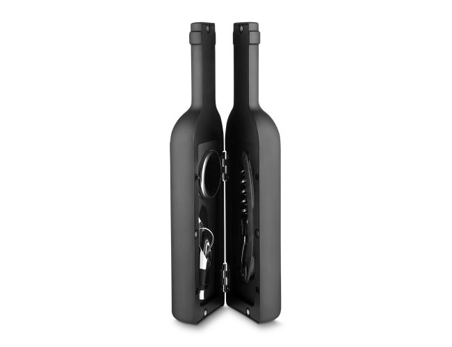 Kit Vinho 4 peças, contendo: Estojo modelo garrafa;