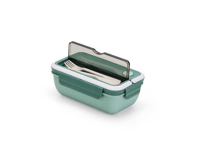 Marmita hermética de 1 litro com divisórias e 3 talheres. Feita em PP atóxico e livre de BPA, é completamente segura para armazenar alimentos. A tampa possui travas de segurança, supervedação, silicone com respiro e alças que facilitam o transporte. Os talheres podem ser guardados em um compartimento separado com tampa transparente, garantindo praticidade durante as refeições. Além disso, as duas divisórias internas mantêm os alimentos separados, preservando o sabor de cada um. Uma escolha inteligente para uma vida prática e saudável.