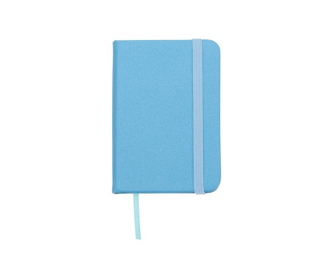 Mini Caderneta em material sintético brilhante com marcador de página em cetim e fita elástica para fechar. Contém aproximadamente 80 folhas amareladas sem pauta.