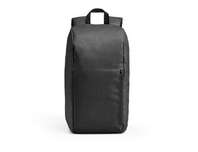 Mochila. 600D. Bolso exterior frontal com zíper. Parte posterior almofadada, com sistema de apoio acolchoado para as costas e alças almofadadas. Dimensões: 245 x 400 x 115 mm.