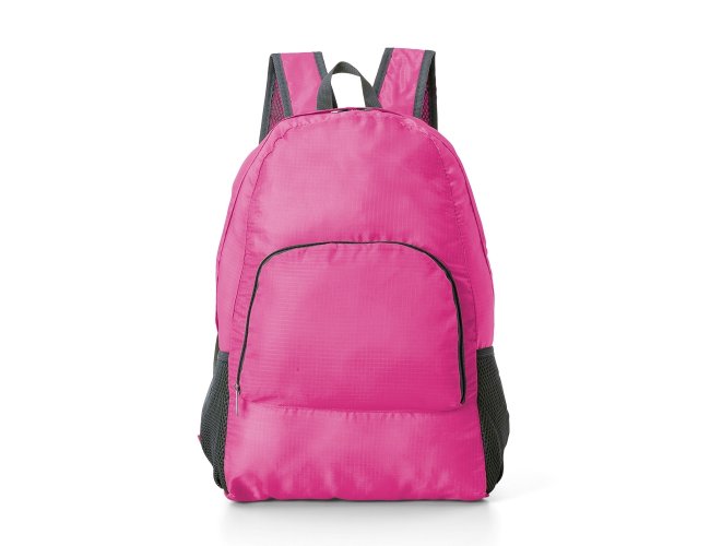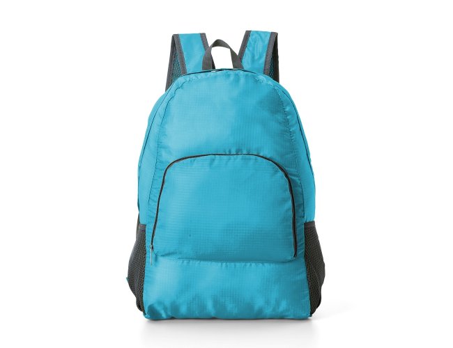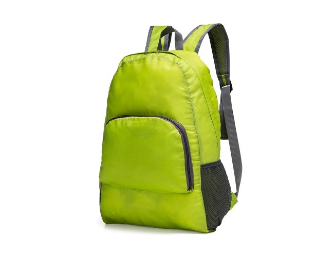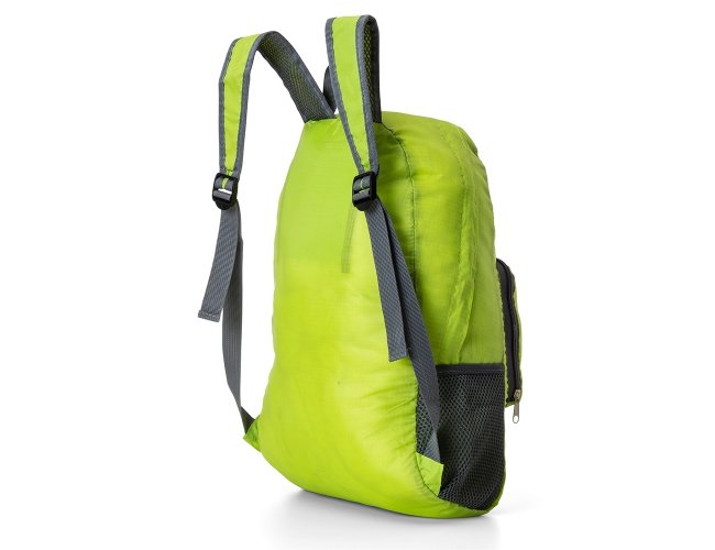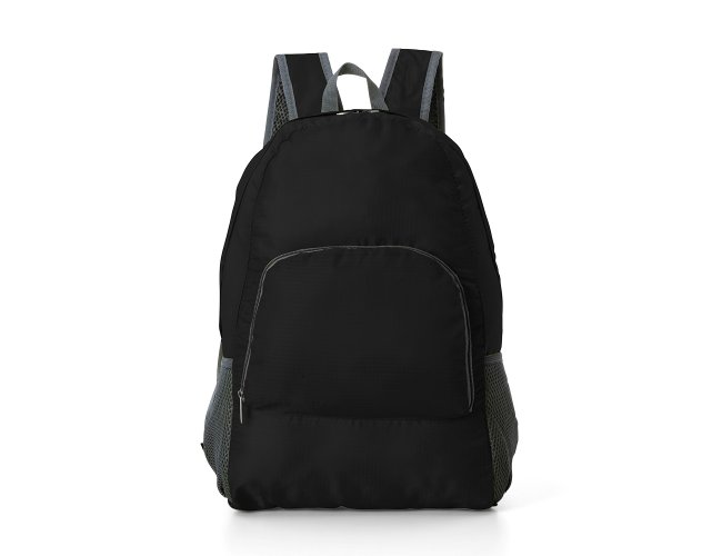 Mochila dobrável de 25 litros confeccionada em nylon impermeável. Compacta e com abertura prática, possui compartimento principal com pequeno bolso interno, bolsos laterais em malha e bolso frontal – compartimento responsável por acomodar a mochila. Para armazenar a mochila no compartimento basta virar o bolso frontal do avesso e dobrar o tecido para melhor acomodação do material. O modo compacto possui uma alça em nylon para transporte, a mochila dispõe de alça de mão em nylon e alças ajustáveis para as costas com revestimento espumado.