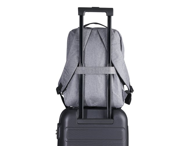 Mochila de nylon 20 litros com três compartimentos, sendo o principal com bolso para notebook 156. Com divisórias internas para acessórios, a mochila possui bolso lateral, suporte externo usb e alça para encaixe em malas de viagem.