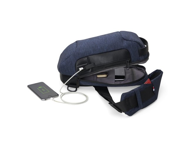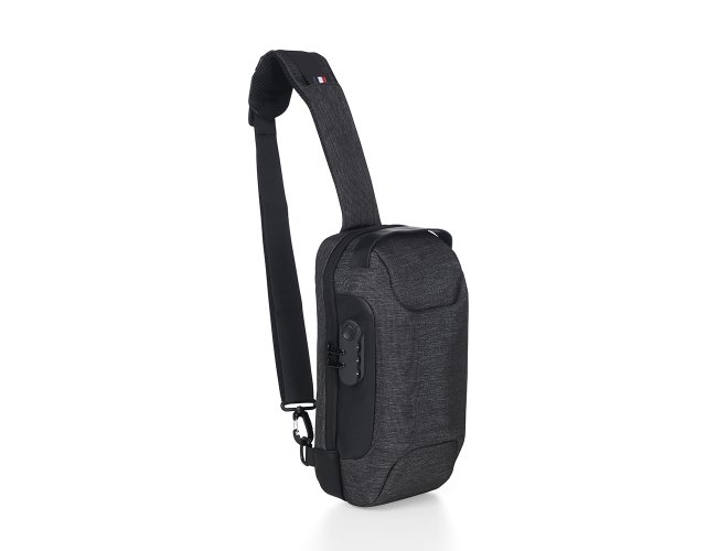 Mochila de ombro com entrada USB e Micro USB lateral. A mochila possui, um compartimento principal com segredo (TSA), bolso oculto na parte traseira, além de 3 divisórias internas, sendo uma capaz de armazenar tablet, netbook ou Ipad de até 9 polegadas. Alça de mão e detalhes laterais e inferiores em couro sintético, tira de nylon na alça, 2 fivelas para opção de encaixe da alça, revestimento espumado antitranspirante na parte traseira e na alça, e tecido resistente a água.