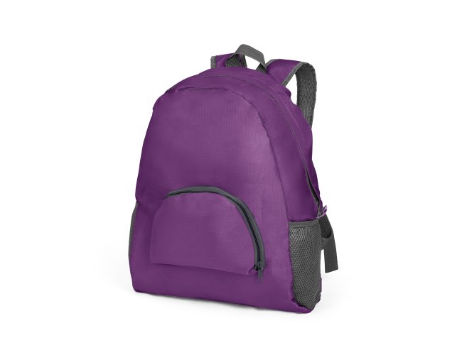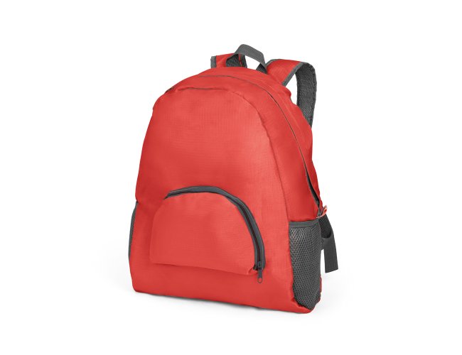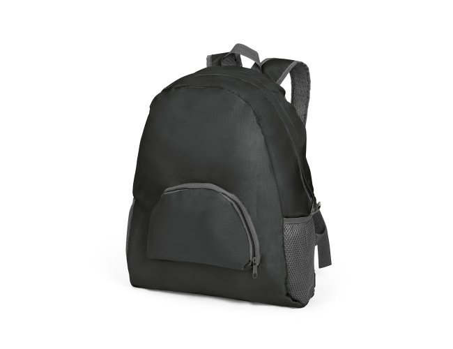 Mochila dobrável em 210D ripstop com bolso frontal e dois bolsos laterais em tela. 330 x 400 x 120 mm | Dobrada: 195 x 160 x 25 mm