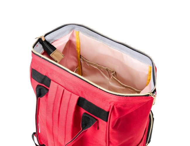 Mochila funcional de 19 litros em tecido oxford resistente à água. Possui dois compartimentos distintos para uma organização eficiente. O compartimento principal conta com uma armação metálica que proporciona abertura fácil e manuseio prático, além de quatro bolsos internos para organização adicional. Na compartimento frontal, encontram-se três bolsos térmicos ideais para itens sensíveis à temperatura. A mochila também dispõe de dois bolsos laterais e duas alças de mão com suporte para juntura, proporcionando praticidade ao transporte. As alças para as costas são ajustáveis, garantindo conforto personalizado durante o uso.