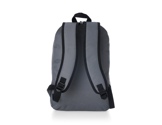 Mochila confeccionada em Nylon 17 Litros. Contém bolso frontal com zíper, alça de mão em nylon e alças para as costas ajustáveis.