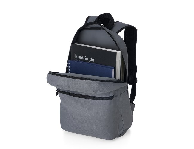 Mochila confeccionada em Nylon 17 Litros. Contém bolso frontal com zíper, alça de mão em nylon e alças para as costas ajustáveis.