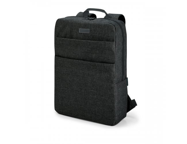 Mochila para notebook. 600D de alta densidade. Compartimento com divisória almofadada para notebook até 15.6''. Interior forrado e almofadado. Com 2 bolsos frontais. Parte posterior e alças almofadadas. Placa metálica removível com imã, para fácil gravação. 295 x 390 x 100 mm | Placa: 50 x 20 mm