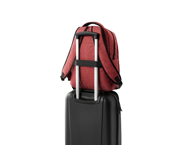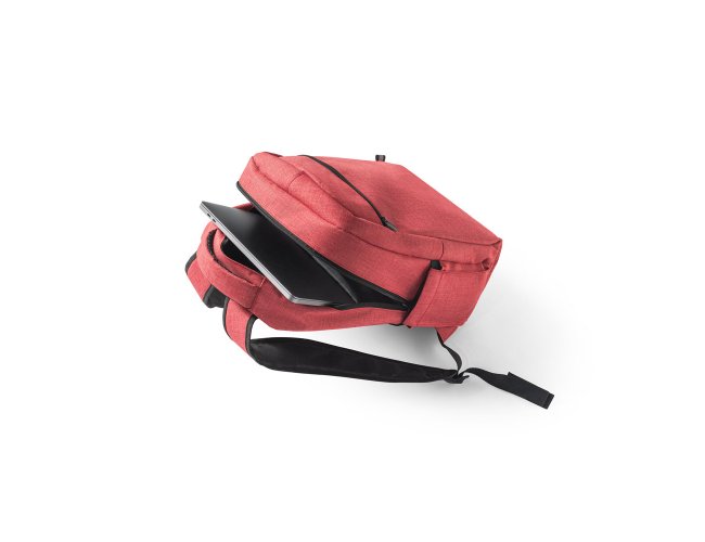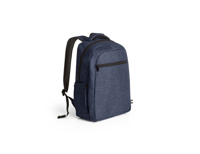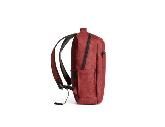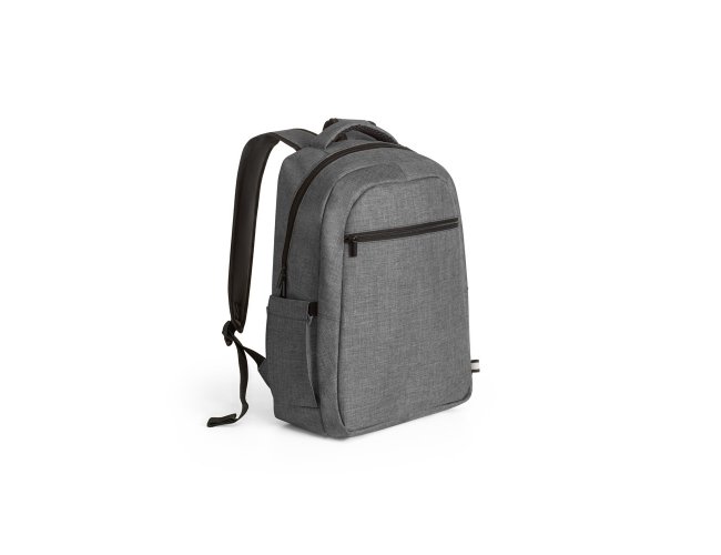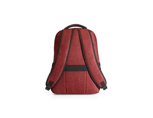Mochila para notebook em 600D de alta densidade com compartimento principal para notebook até 15". Contém bolsos laterais em tela e um bolso frontal com zíper. Parte posterior e alças almofadadas que incorporam alça para trolley em caso de necessidade.