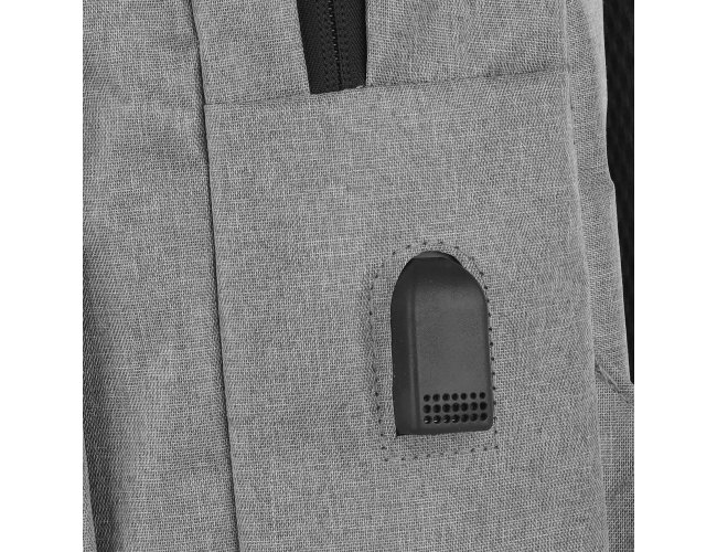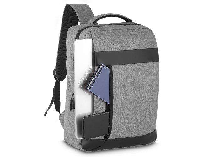 Parte externa: Alças de mão e de ombro acolchoadas; 2 bolsos frontais com zíper; Conector USB na lateral;