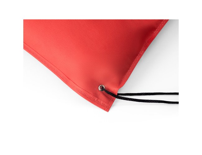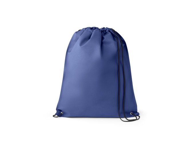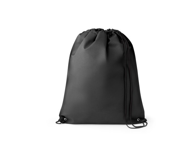 Sacola tipo mochila em non-woven (80 m/g²) termo-selado com ilhós de metal e cordão 4/1 preto. 330 x 400 m