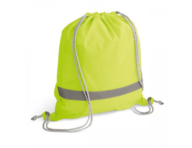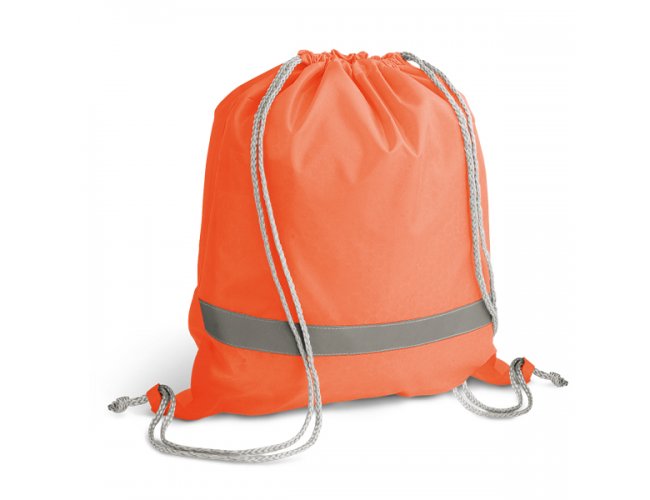 Sacola tipo mochila. 210D. Com elementos refletivos. 350 x 400 mm