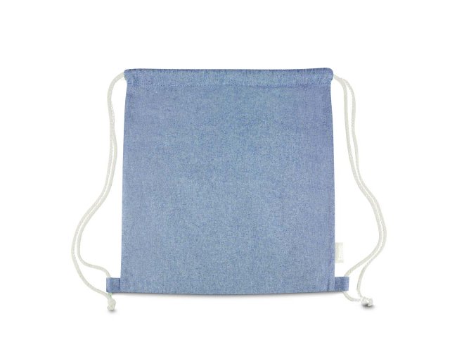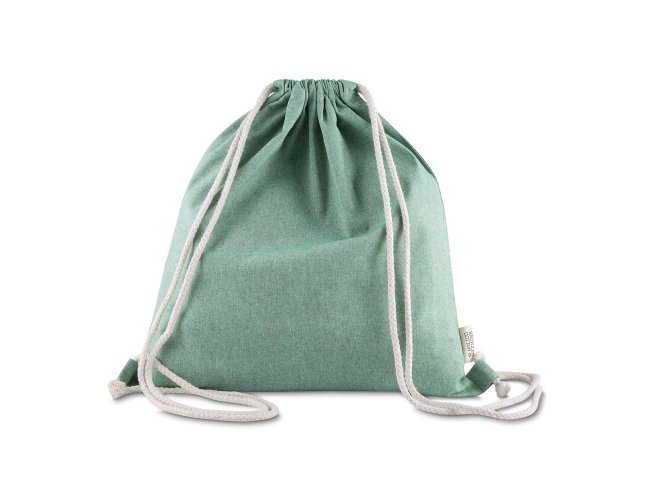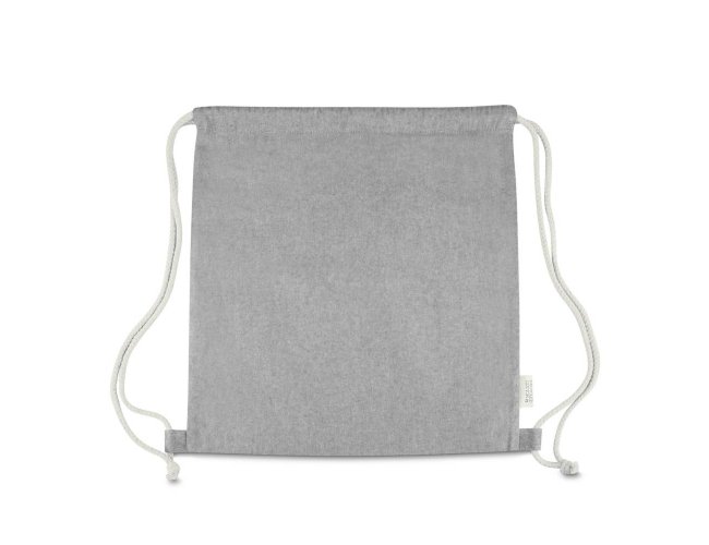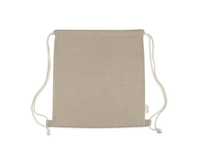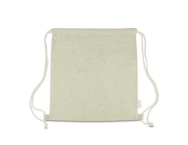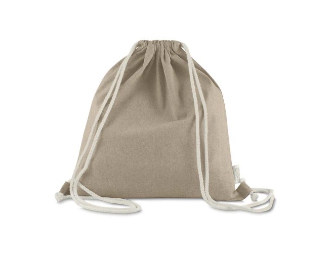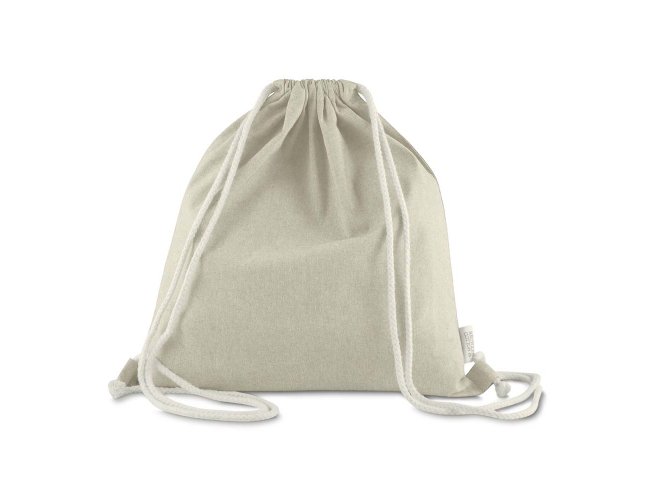 Sacola/mochila confeccionada em algodão mescla reciclado, gramatura 140g/m², com alças em algodão cru.