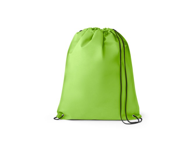Sacola tipo mochila em non-woven (80 m/g²) termo-selado com ilhós de metal e cordão 4/1 preto. 330 x 400 m