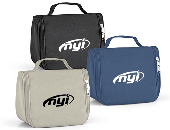 Nécessaire 92724 Personalizada com a sua logomarca. Microfibra. Com vários bolsos interiores e gancho de pendurar.