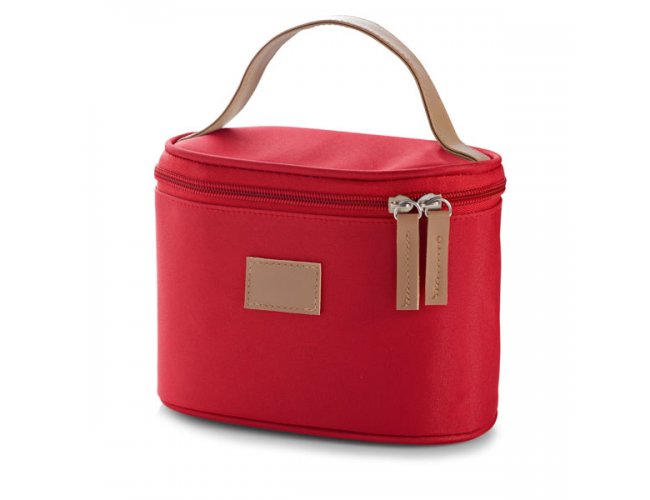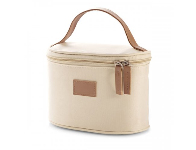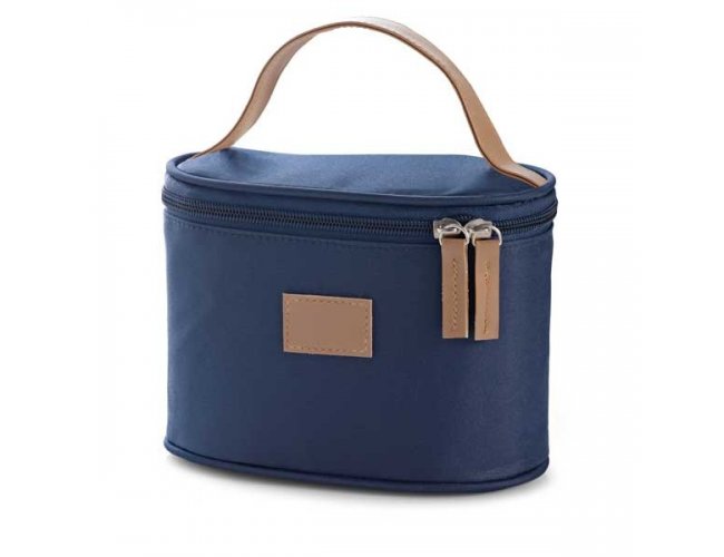 Bolsa de cosméticos em microfibra com detalhe em c. sintético e zíper duplo. 180 x 120 x 100 mm