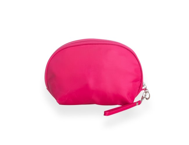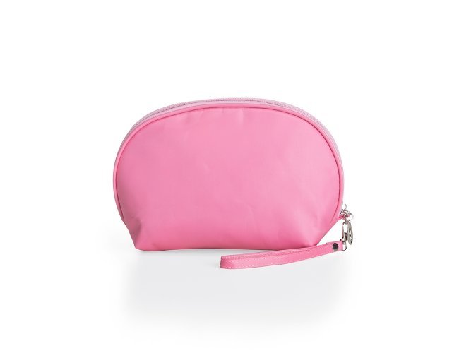 Necessaire de nylon com forro em poliéster, acompanha alça com gancho para encaixe.