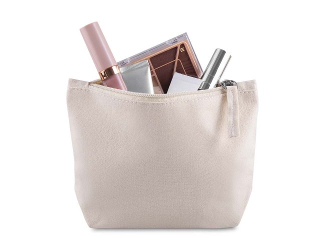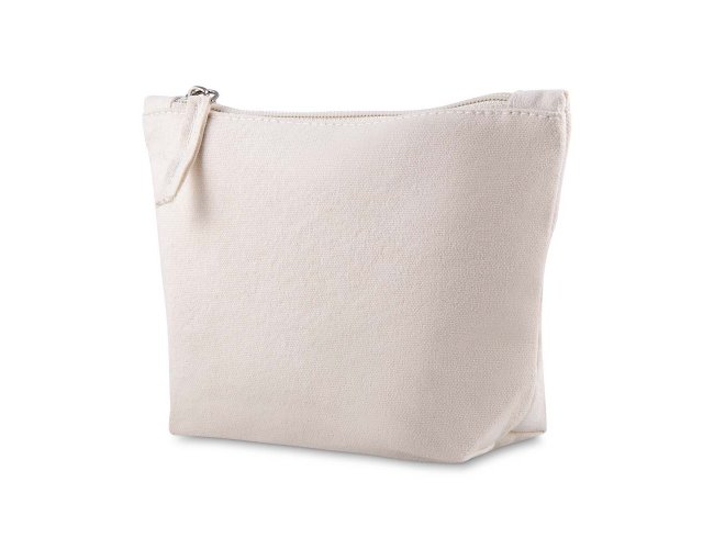 Necessaire confeccionada em algodão reciclado 340 g/m², com puxador em detalhe de algodão reciclado. Estrutura prática e durável, proporcionando espaço adequado para armazenar e organizar objetos pessoais com facilidade.