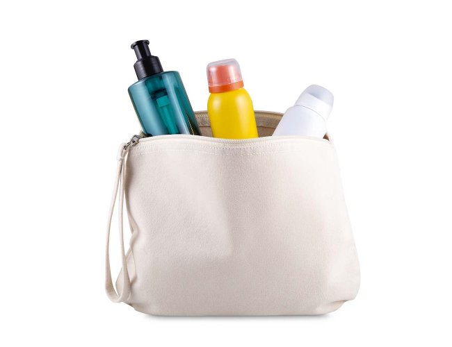 Necessaire confeccionada em algodão reciclado de 340 g/m², conta com alça de mão em algodão que facilita o transporte, sendo prática e resistente para organização de objetos pessoais.