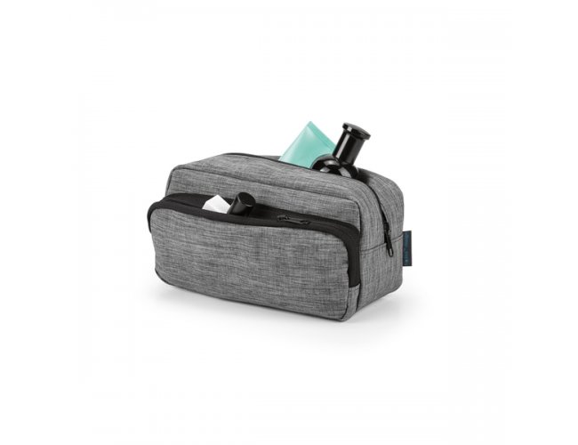 Nécessaire. 300D de alta densidade. Com pega e bolso frontal. Interior forrado. 220 x 115 x 115 mm