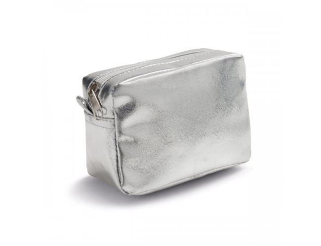 Bolsa multiusos em PVC com zíper. Prática e compacta ideal para uso diário ou em viagem. Disponível em cores metalizadas. 140 x 95 x 70 mm