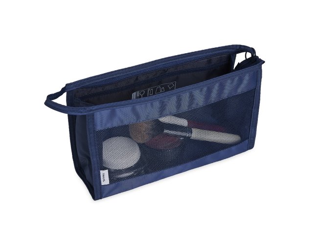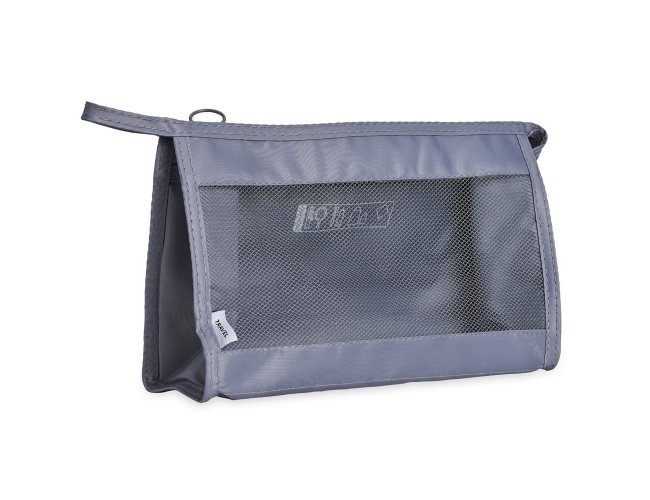 Descrição: Nécessaire organizadora em poliéster, possui compartimento principal com bolso de zíper resistente à água.