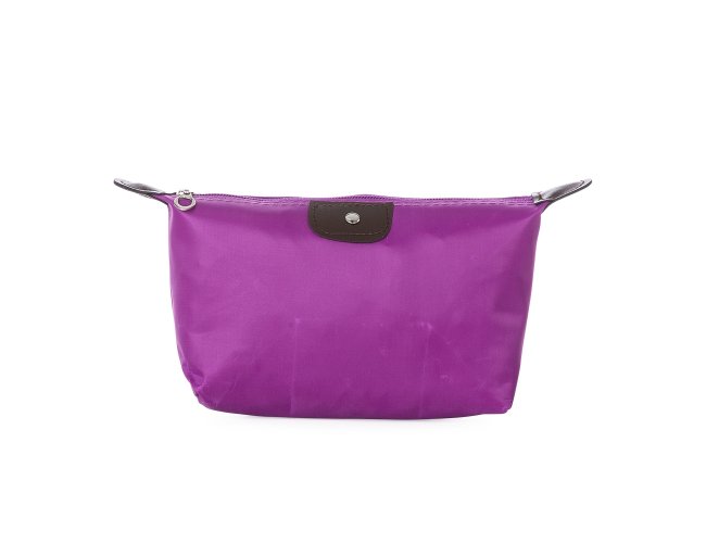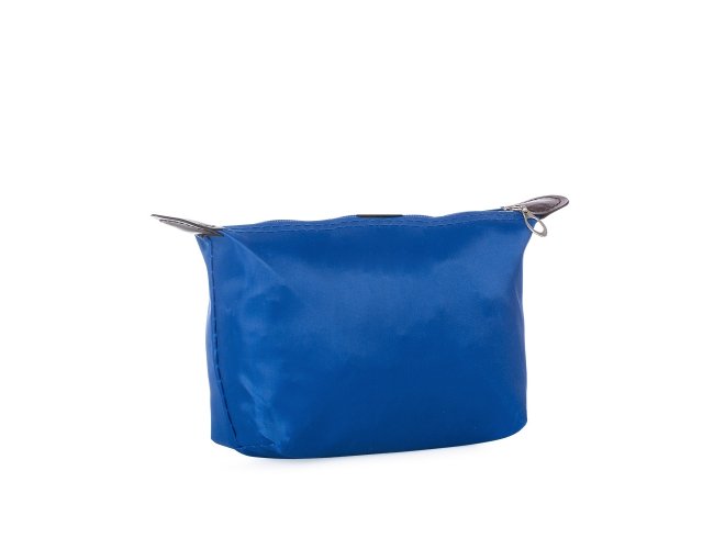 Necessaire impermeável de poliéster com detalhes em couro sintético e parte interna com revestimento emborrachado, possui um “botão” no detalhe do couro frontal.