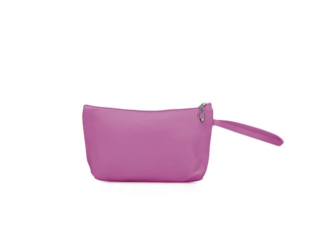 Necessaire impermeável de pvc, possui forro interno em poliéster e alça lateral externa para transporte.