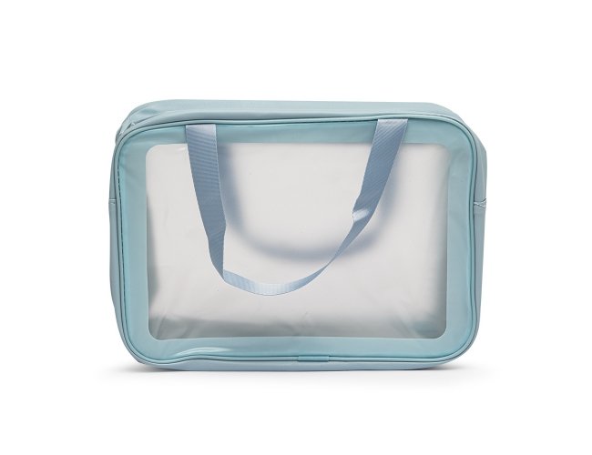 Nécessaire de PVC e PU resistente à água, com duas alças laterais de mão.
