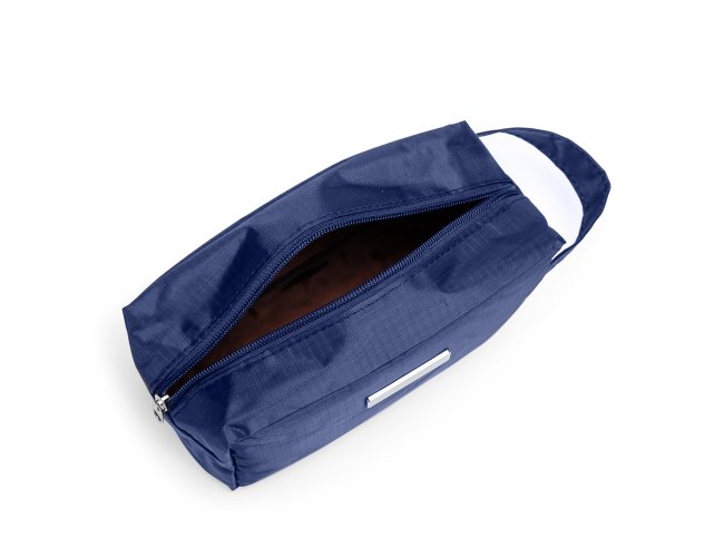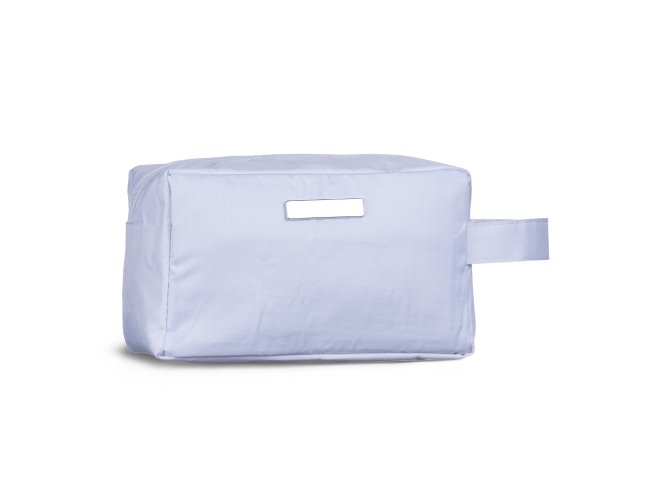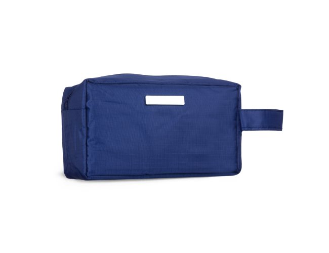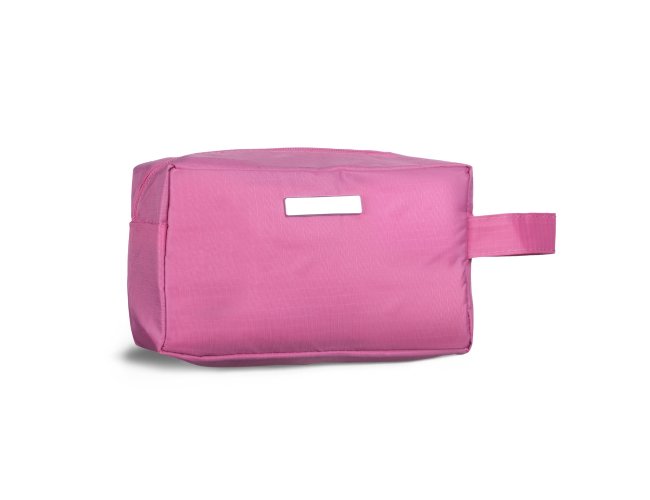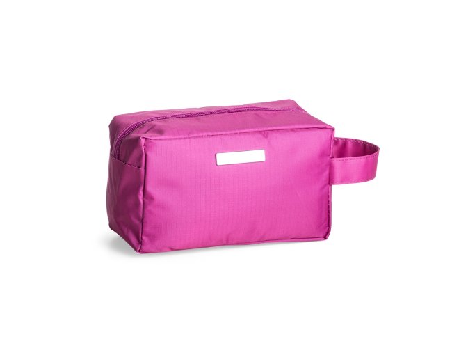 Nécessaire de pvc resistente à água com plaquinha metálica fixa.