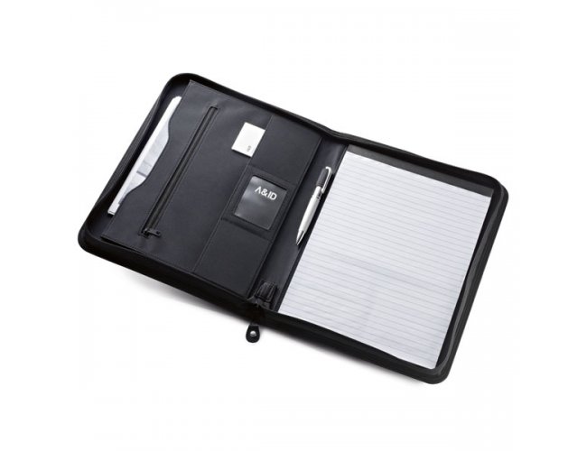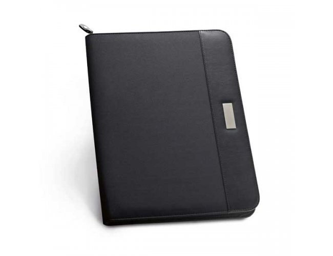 Pasta A4 Personalizada 92044. C. sintético e microfibra. Bloco: 20 folhas pautadas. Esferográfica não inclusa. 245 x 325 x 40 mm | Chapa: 16 x 45 mm