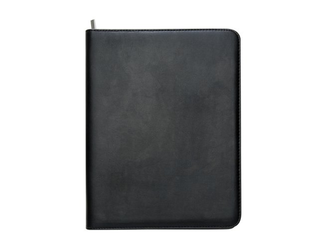 Pasta convenção de couro sintético com zíper, possui 2 compartimentos grandes para arquivar documentos, compartimento interno com zíper, 7 divisórias pequenas para documentos, suporte com visor para cartão de identificação, suporte para caneta(não acompanha caneta) e bloco com 20 folhas pautadas.