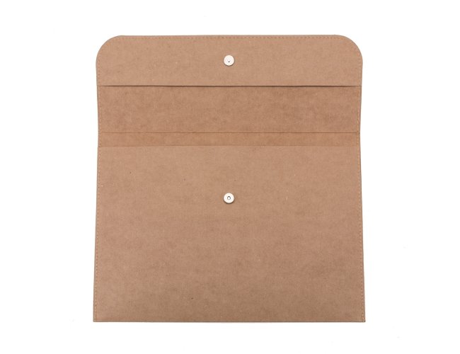 Pasta Envelope Kraft 12771 Personalizado com a sua logomarca. Possui abertura superior fixada por um botão imãtizado. Detalhes costurados nas laterais, material em kraft. Tamanho total aproximado (CxD): 27,1 cm x 37 cm. Peso aproximado (g): 114